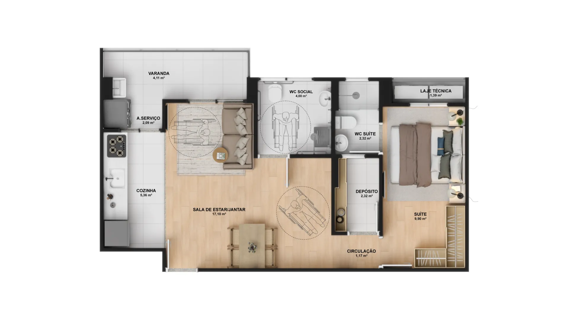 235 vagas rotativas para carros, sendo 18 vagas PCD.Tipologia das unidades
