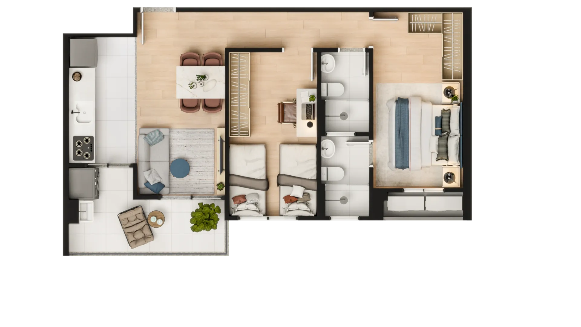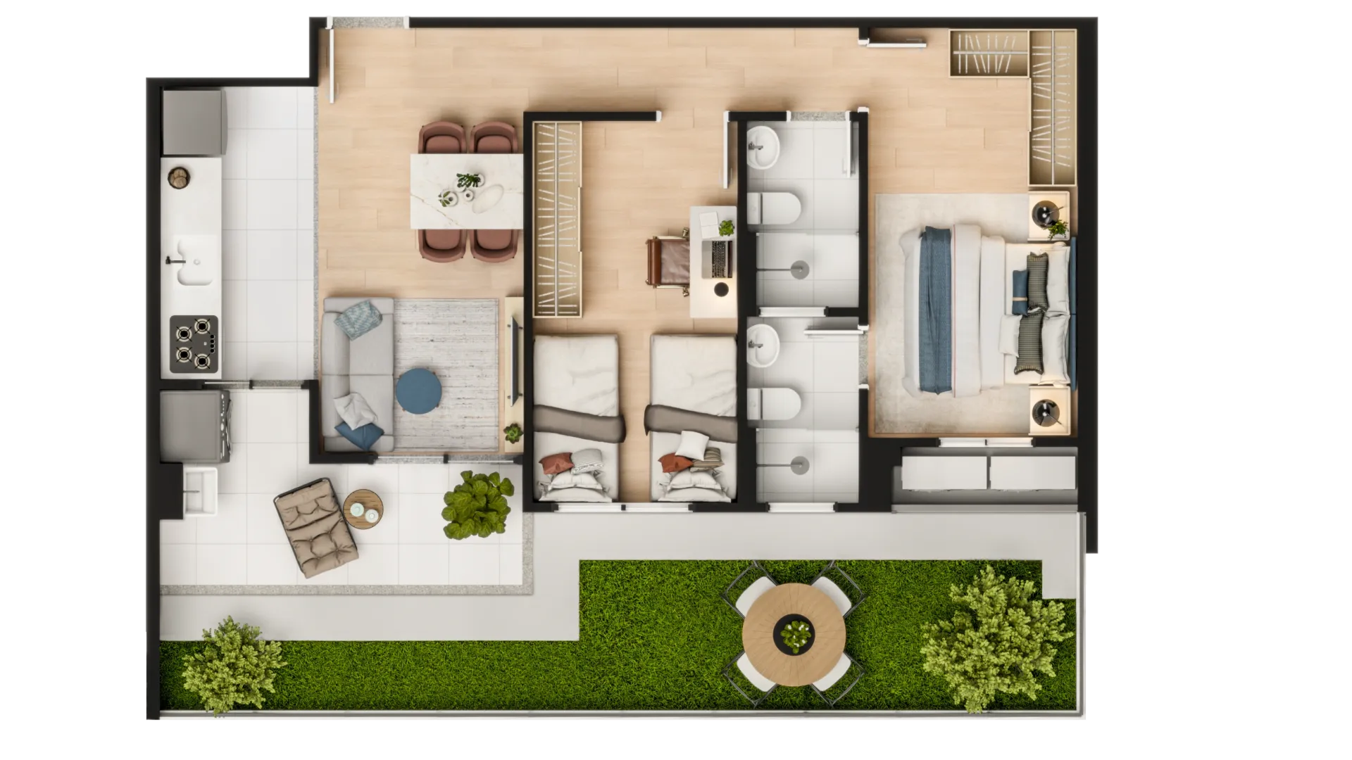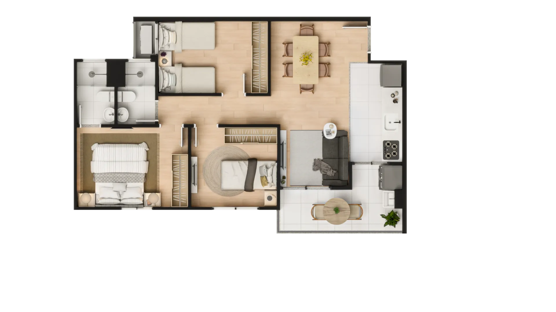 - 2 ou 3 quartos com suíte